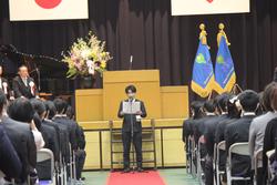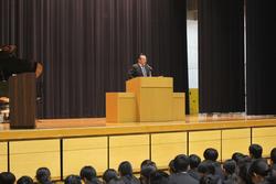 「一年の計は元旦にあり」の言葉を取り上げて、「計」が意味するのは「計画」であり、「元旦」は午前中を指すことから、「この1年どのような目標に向かって生きるのか、その目標を1月1日の午前中に決めよ」という意味であること、さらには「一生の計は少壮(しょうそう)にあり」の「少壮」とは若くて元気な時期という意味でまさに生徒の皆を含めた青年期を指していることから、人生設計を若くて元気な時期に考え、チャレンジすることの重要性を説きました。