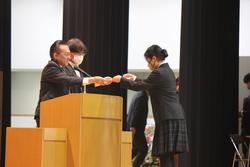3月25日水曜日に修了式がアリーナに一堂に会して行われました。式典の前には3Dプリンターコンテストの表彰と協賛をいただいている京三製作所の島添様からの講話をいただきました。毎年度末に本校生徒へ熱意あふれるアドバイスをいただき、励みになっています。各種表彰も行われ、多くの生徒が壇上にあがりました。藤本貴也校長の講話では、「修了式の今日は、単に『終わる日』ではなく、自分自身の歩みを振り返り、次の一歩を考える大切な節目であるということ」、「様々な研究活動、文化祭、SSHの取組、国際交流、部活動や委員会活動など、学校の内外で多くの挑戦はこれからの人生を支える大切な糧となっていくということ」などについて触れ、最後には「新入生の受け入れに関するお願い」、道路交通法が改正されて自転車の通学への注意も含めた「安全面への注意」を伝えて講和を締めくくりました。