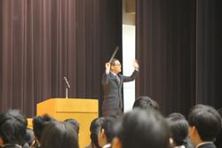 最後に、主に高等学校3年次生に向けて、「近年は、国公立大学でも、調査書等の出願書類に加えて、小論文や面接、プレゼンテーションなど多様な評価方法を活用し、学力試験以外の要素を取り入れた総合型選抜・学校推薦型選抜などの入学者選抜が増え、募集定員も増えていることにふれて、受験を考えている学校の情報をしっかりとつかんで、今年度の学習を進めてほしい」と述べて、「高校3年次生だけでなく、大学進学を目指す高校2年次生、中学生の皆さんも目標とする大学の入試情報を十分に注視しながら、なりたい自分像を思い描き、本校での学びを進めてください。そのためには、毎日の授業を大切にして真剣に取り組む姿勢、そして将来、自分はどのように社会と関わりたいのか、どんなことをしたいのか、そのために今自分は何をする必要があるのか、自分の目標を自分自身ではっきりと定めて、その目標に向かって挑戦してください。」と将来を見据えた日々の積み重ねの大切さを述べて講話を終えました。