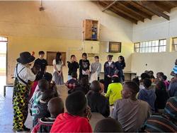 施設見学の後は、孤児院で生活する40名ほどの子どもたちとの交流の時間となりました。スワヒリ語で挨拶をした後、Y校生が事前に計画していたプログラムに沿って、グラウンドでは全員リレーを、室内ではハンカチお年をメインの遊びとして行いました。