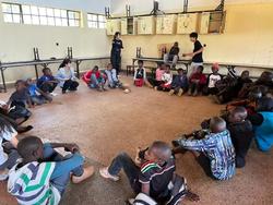 続いて障がい児の支援施設「シロアムの園」を訪問し、代表を務める小児科医の公文和子先生からお話を伺いました。ケニアでは、障がい児への医療、福祉制度、教育の機会が十分に整っていない状況ですが、同施設は、一人ひとりのニーズに合わせた医療と支援、さらに母親の就業支援まで行っています。この施設には、現在54名が通所している一方で、約200名もの待機児童がいるそうです。
