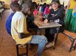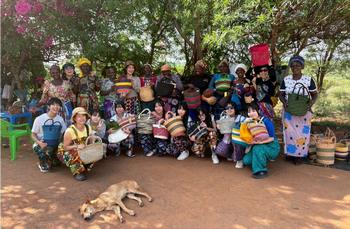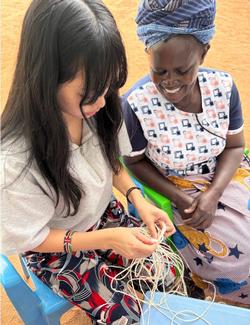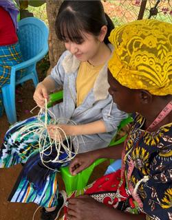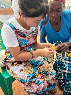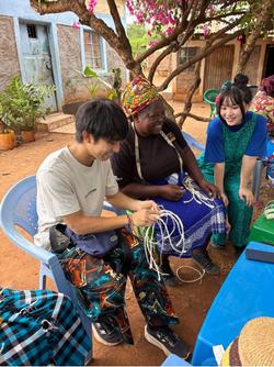 自己紹介とお祈りをした後、最初の体験としてサイザルでコースターを編みました。言葉が通じない中、ジェスチャーも交えながら何とかみんなコミュニケーションを取って編んでいきます。なかなか上手でした。