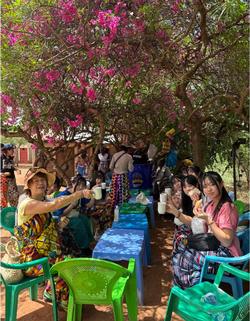 村に着くと、村の人たちが笑顔で迎え入れてくれました。ウェルカムティーをパンと一緒にいただきました。