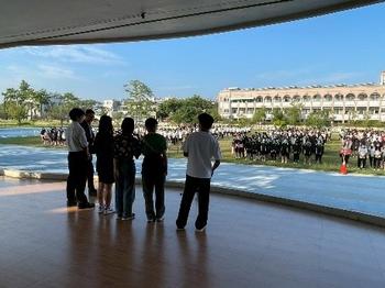 まず始めに毎週火曜日に実施される「国旗掲揚式」という全校朝礼に参加しました。