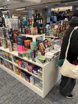海外では、個人で遊ぶことが多いテレビゲームよりも、みんなで会話しながらできるボードゲームが主流のようで売り場の大半を占めていることが印象的でした。bookstoreの外でも、日本でいうオセロのようなゲームを友人たちと楽しみながら行う学生さんたちがいました。