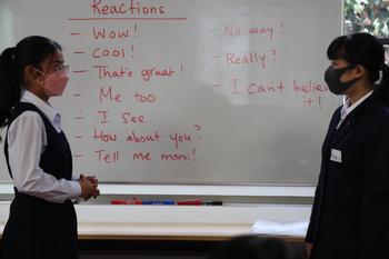 リアクションの表現や少し体を動かしながら会話を続けていくと、徐々に生徒たちの表情もほぐれ、笑い声が聞こえてきました。