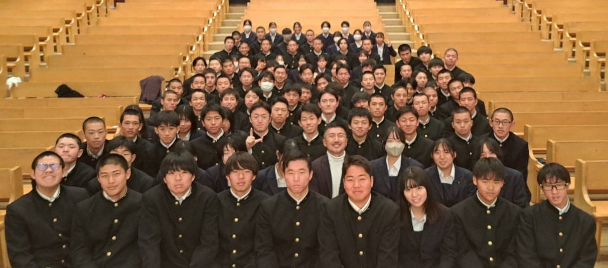 ご自身のスポーツやビジネスの中で培われてきた考え方を経験とともに熱い言葉で伝えていただきました。自分や自分の経営する会社が「どうなりたいのか」「なぜそうしたいのか」を持つことで自分の将来のビジョンやミッションを明確にし、信じることができるとお話しいただきました。また、生徒から「まだビジョンやミッションを明確に持てていないがどうやって決めていけばいいのか?」という質問に対し、「可能性があるものをとことん本気でやってみる。やってみたうえでダメなら変えて次を一生懸命またやる」と心強い一言でお答えいただきました。