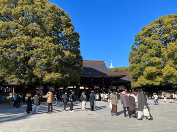 班ごとに昼食を済ませ、次は「明治神宮」です。天気にも恵まれ、林の中を気持ちよく歩きながら本殿に向かいました。初めて訪れる生徒もおり、お参りの仕方を聞き合いながら各々お参りしたり、おみくじをひいたりしました。