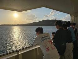夕方には、翌日の民家体験に向けてフェリーで伊江島へと渡りました。 フェリーのデッキから眺める沖縄の海は青く壮大で、その美しい景色を見つめる生徒たちの表情も輝いていました。