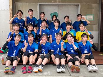 私たち女子バレーボール部は3年生5人、2年生5人、1年生8人(うち2人マネージャー)、の18人の部員数で、現在は3年生が引退し、1・2年生での活動となっています。