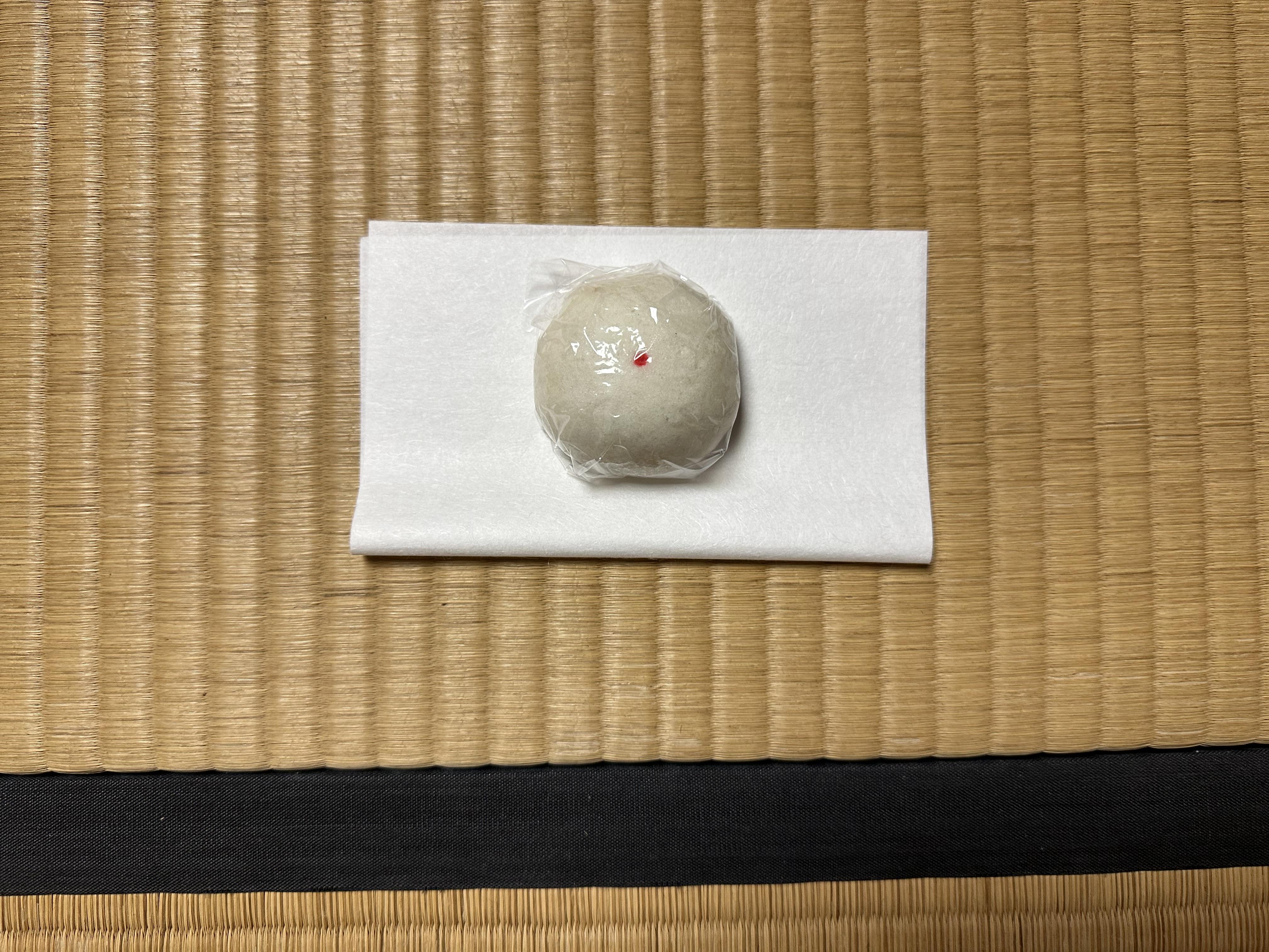 干支(午)の色紙を床の間にかけ、新年を祝います。表千家の初釜は笑顔饅頭です。皮に山芋が入った薯蕷でえくぼを表す赤い印がつけられます。新年を寿ぎ、無病息災を願う六瓢蒔絵(六つのひょうたんの絵柄)の棗(なつめ)茶入れが用いられます。