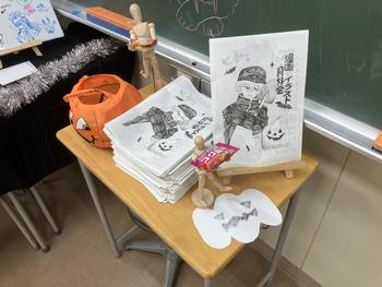 10/28(金)に開催された横総祭に企画団体として参加しました。今年度はコロナ感染対策と同好会に所属している人数が多いことから、おそらく初めての2教室での実施となりました。この日のために夏休み前から準備を始めて当日を迎えました。2教室での実施ということで、今までとは違う難しさに直面しながらも、イラストだけでなく、折り紙や簡単な工作をするなどして教室内の装飾を行いました。 今年度のメインの活動はこれで終了です。この先は年末と年明けに部誌を製作して年度末を迎える予定です。 |