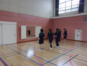 2年生の保健体育では、男子は格技場で柔道、女子は体育館でダンスをしています。男子は真剣に受け身の練習をしていました。女子は、小グループに分かれノリノリで練習に励んでいました。体育館の鏡を活用しながら自分たちの動きを確認していました。運動でも思考力・判断力・表現力を伸ばしていて、素晴らしいと感じました。