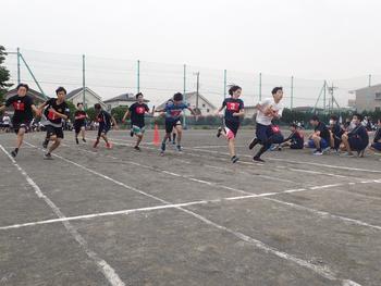 天候が心配でしたが、何とか開催できた午後の部活動対抗リレー。職員も頑張りました(3名転倒。苦笑)。