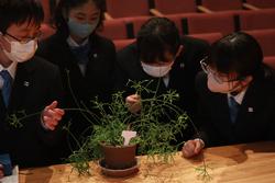 本校の特色ある授業の柱の一つでもあるサイエンススタディーズ(SS)の授業が始まりました。1年生の初回の授業では、基礎生物研究所の研究員で高校のサイエンスリテラシー(SL)のアドバイサーをしてくださっている中川知己先生のご講演を聴いて、「研究」とは何かを考えました。中川先生のお話は、植物への愛や敬意に溢れていました。質問タイムには多くの質問が出て、1年生のみなさんの好奇心旺盛な姿に、サイエンス生としての気質が垣間見えました。今後が楽しみです。また、ご講演後には中川先生の育てている植物を観察するだけでなく、たくさん触らせていただきました。1年生のみなさんの探究と挑戦の始まりです。