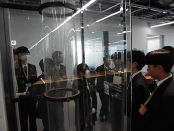 その後、4つの班に分かれて、AO studio、AOギャラリー、AO Lab、研究エリアを見学しました。年表資料を前に開業当時は板ガラスが手作業で作られていたことを教わり、研究室の様子からは現在では沢山の研究者が関わり新素材の研究開発が進められていることを見学させていただきました。