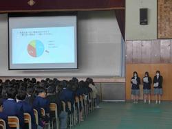 12月11日(木)、学校保健委員会の企画として「睡眠の大切さ」について学ぶ取組を行いました。まず、保健委員が全校生徒に実施した睡眠に関するアンケート結果を発表し、現状を共有しました。