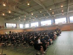 アリーナで予定していた始業式ですが、1,2年生で体調不良者が多く出ているクラスがあるため、急遽放送での実施になりました。