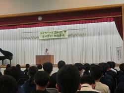 今日の6時間目は、アリーナで1年生の中間発表会がありました。ステージ上の生徒は少々緊張気味でしたが、本番に向けて、いい練習になったようです。