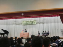 開祭式の後、よこはま子ども国際平和スピーチ代表者スピーチ、英語弁論大会代表者スピーチ、図書委員会による「押し本フェス」、生徒会本部、書道部、PTAコーラスと、それぞれ発表がありました。