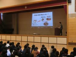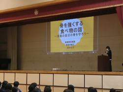 本日11月18日(火)の4時間目に全校生徒対象に「骨の健康(骨粗鬆症予防)」についての講演会をアリーナで行いました。