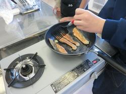 2年生の調理実習の様子です。つくっているのは「鮭のムニエル」