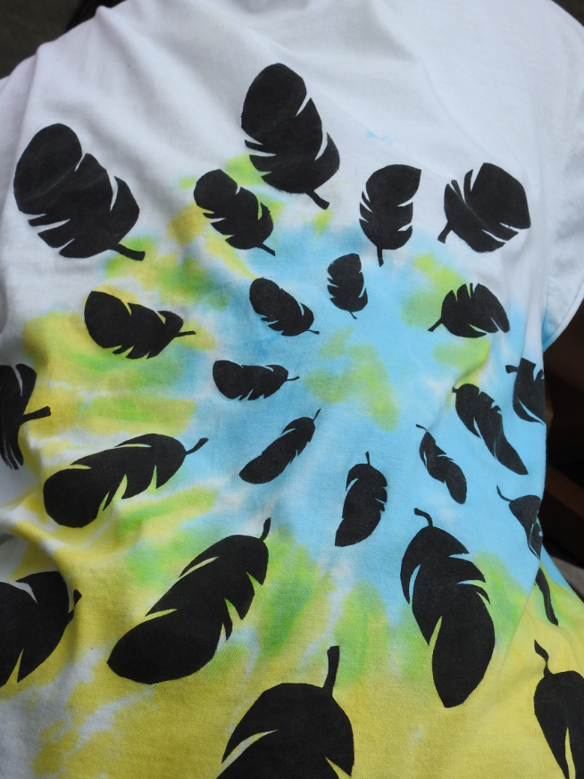 3年生の美術の時間にそれぞれがデザインをし、自らの手で染め上げ
