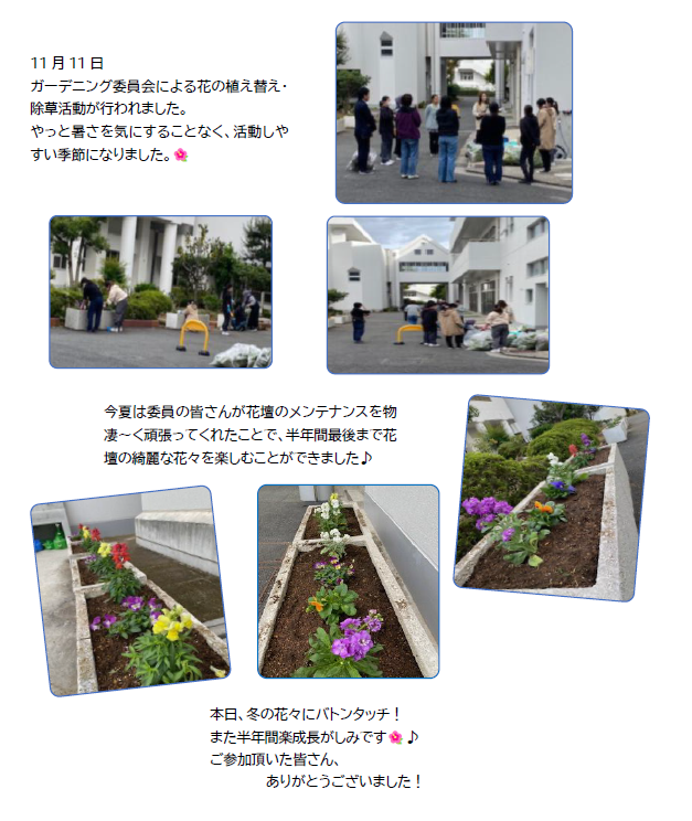 更新情報 2025年11月11日 ガーデニング活動@November 2025年11月10日 交通安全教室🚲 2025年11月6日 学校だより(R7年度 第6号) 20251106-110126.pdf [ 1645 KB pdfファイル] 2025年10月22日 R7年度 作品展🖌 2025年10月20日 R7年度 音楽祭♪