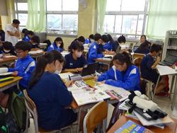 夏休み明けから、校内で授業研究に取り組んでいます。全教員が1回以上研究授業を設定し、教員が互いに授業を見合って気づいたことを伝え合い、授業改善に努めています。社会科で自由進度学習を行ったり、理科で各自で仮説を立てて実験に取り組んだり、国語でロイロノート・スクールを活用して意見交換をしたり、生徒たちが主体的に学べるような授業づくりが工夫しています。