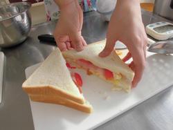 7組で調理実習を行いました。今回はサンドウィッチ作りに挑戦しました。計画通りに手順を踏んで調理を進め、自分たちの力でサンドウィッチを完成させました。とてもおいしく仕上がりました。生徒たちは、笑顔で試食をしていました。