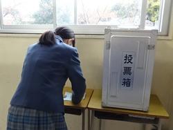 本日は、生徒会本部役員の立会演説会と投票を行いました。学校をよりよくしていこうとする候補者たちと応援者たちの演説は、とても力強く頼もしく感じました。投票には、区役所からお借りした実際の投票箱を使用しました。緊張感をもって責任ある投票ができたことでしょう。これからの生徒会活動がますます楽しみです。