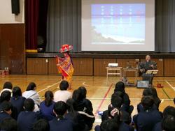 1/16 2年生が沖縄県人会の方々と沖縄の苦難の歴史と豊かな文化を学びました。今後の沖縄県東村立東中学校との交流に生かし、5月の修学旅行につなげます。