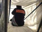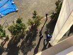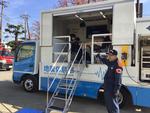 地震体験車で震度6強の揺れを体験し、学校に備え付けられている救助袋で3Fから降りる体験もしました。