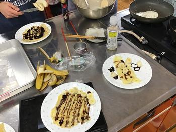 今回のテーマは「アレルギーに配慮した実習」ということで、チョコバナナクレープを作りました。