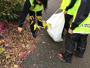 今回は、それぞれが小グループを作り、町に落ちているごみ拾いや、落ち葉・枯れ葉を集めて道をきれいにする活動が中心です。