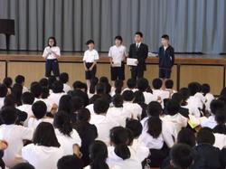 本日4校時、1年自然教室の事前指導が行われました。点呼の練習や各係代表生徒からの話し、また辺見先生からの現地では「考えた行動」をしようなど諸注意を真剣にみんな聞いていました。
