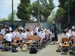 明け方までの雨のため、1時間遅れで実施した予行演習。式や競技の流れを全体で確認しました。まだ、準備中。競技の興奮は、本番にとってあります。
