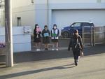 昨日までの雪空が晴れ上がり、今朝は真っ青な快晴です。日陰はとても冷え込んでいますが、あいさつ活動の生徒たちはめげずに大きな声で呼びかけていました。