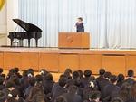 修了式に引き続き、離退任式をしました。離退任する教職員たちは、生徒代表からこれまでの思い出を贈られ、最後のスピーチを生徒たちに伝えました。
