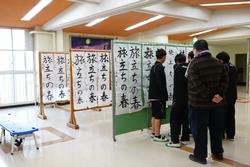 今日から授業が始まりました。全校朝会の後、通常通りの6時間授業を行いました。ホールや廊下に書初めを展示しました。お正月っぽいですね。