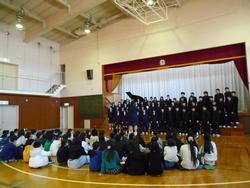 西前小6年生と中3が卒業式で歌う歌を披露し合いました。6年生は『旅立ちの日に』で、澄んだ声が体育館に響きました。中3は『手紙』を歌い、男声パートもきれいに響いていました。すてきな卒業式になるといいですね。