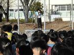 1月9日、校庭にて3学期の始業式を行いました。2学期の終業式は前期課程・後期課程わかれての式でしたが、この日は快晴にも恵まれ、全校児童生徒がそろって校庭で実施することができました。代表児童生徒の言葉では、2年生と8年生から「3学期にむけて」の話がありました。