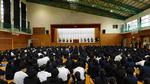 本部役員に立候補した生徒たちが、朝の選挙運動や広報活動後に立会演説を行いました。