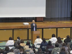 体育館で行われた進路説明会では、進路主任がお話をさせていただきました!