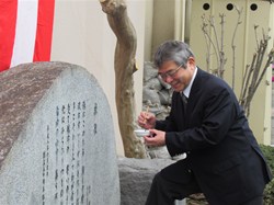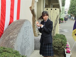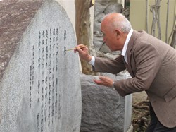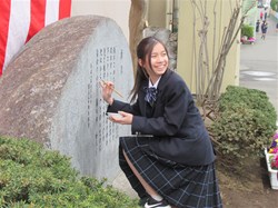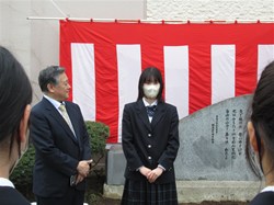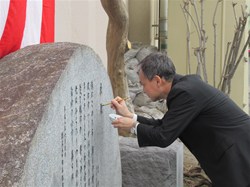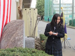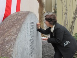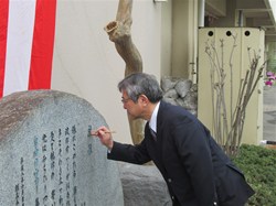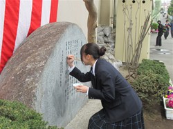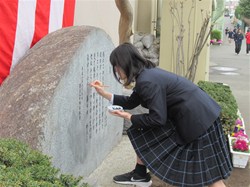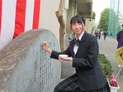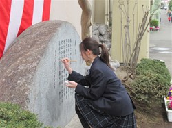 3月19日午後、80周年事業の一環として、同窓会の皆様と生徒会役員で、50周年の時に建てられた石碑の文字に墨入れを行いました!刻まれた校歌が映えました!