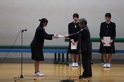 12月18日の6校時に、生徒会本部役員の認証式が行われました!先日の選挙の結果を受けて信任された新役員が校長先生に認証状を頂きます。よりよい六中のため、頑張ってください!