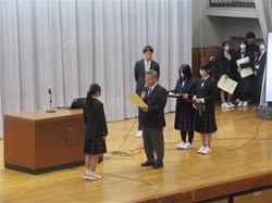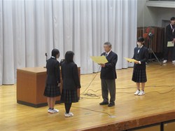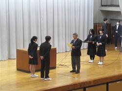 それに先立ち、表彰が行われました。体育活動優秀生徒、新聞コンクールと全日本スキー神奈川予選で表彰がありました。おめでとうございます!