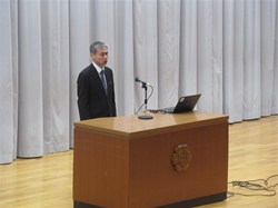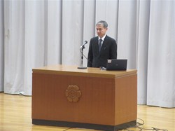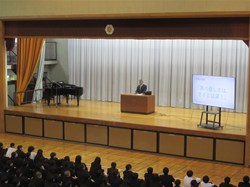 閉式後、来年度迎える80周年についてのお知らせと、生徒指導専任から冬休みの暮らし方についての注意がありました。