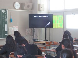 1月30日の6校時、1年生の薬物乱用防止学習が行われました!お酒、たばこ、大麻、覚せい剤から最近話題のゾンビたばこまで、薬物依存の怖さをたくさん聴かせていただきました。薬物乱用ダメ!ゼッタイ!