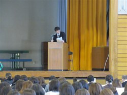 それに先立ち、表彰が行われました。体育活動優秀生徒、新聞コンクールと全日本スキー神奈川予選で表彰がありました。おめでとうございます!